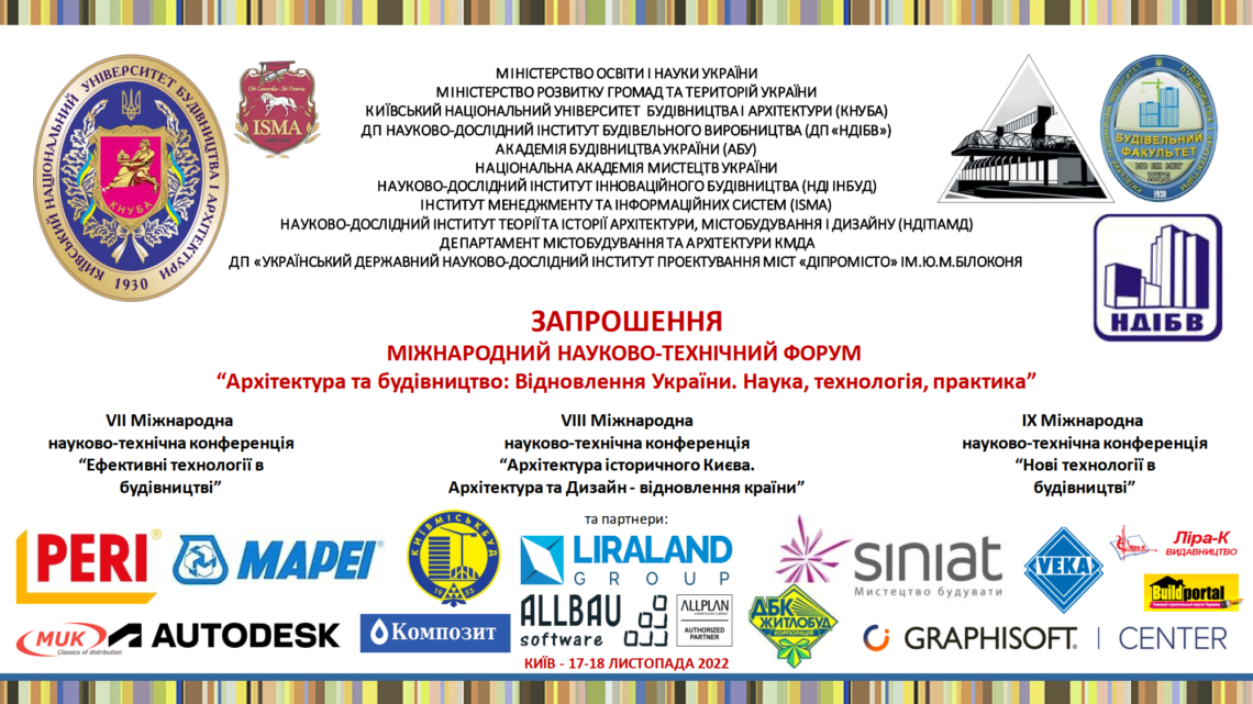 МІЖНАРОДНИЙ НАУКОВО-ТЕХНІЧНИЙ ФОРУМ “АРХІТЕКТУРА ТА БУДІВНИЦТВО: ВІДНОВЛЕННЯ УКРАЇНИ. НАУКА, ТЕХНОЛОГІЯ, ПРАКТИКА” (2022)