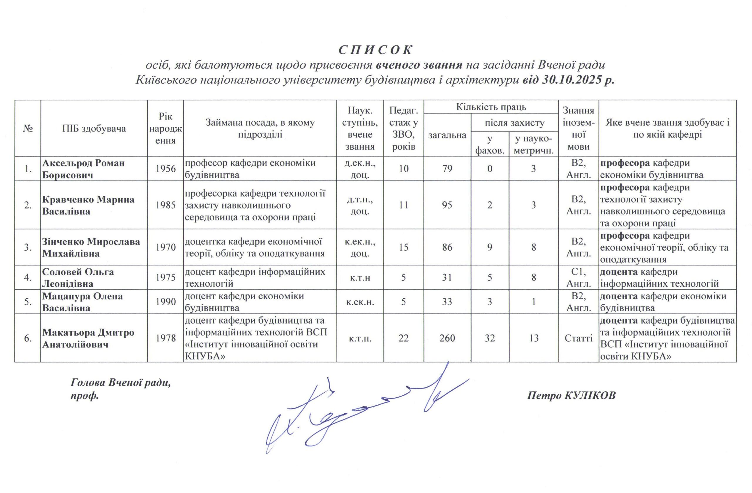 Найближче засідання Вченої ради Наступне засідання Вченої ради відбудеться30 жовтня 2025 р. о 13.00 в залі Вченої радиПорядок денний засідання Вченої радиПоточні справи, які будуть розглянуті на засіданні Вченої радиКадрові питання: Список осіб, що балотуються на здобуття вчених званьСписок осіб, що балотуються до обрання на посади за конкурсом Поширити це: Натисніть щоб поширити через Facebook (Відкривається у новому вікні) Facebook Натисніть, щоб поширити у X (Відкривається у новому вікні) X Натисніть, щоби поширити на LinkedIn (Відкривається у новому вікні) LinkedIn Натисніть щоб поширити через WhatsApp (Відкривається у новому вікні) WhatsApp Натисніть щоб поширити через Telegram (Відкривається у новому вікні) Telegram