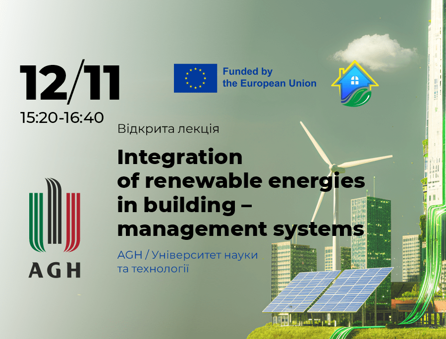 Друга відкрита лекція Integration of renewable energies in building – management systems у межах проєкту Ukrenergy відбудеться 12 листопада