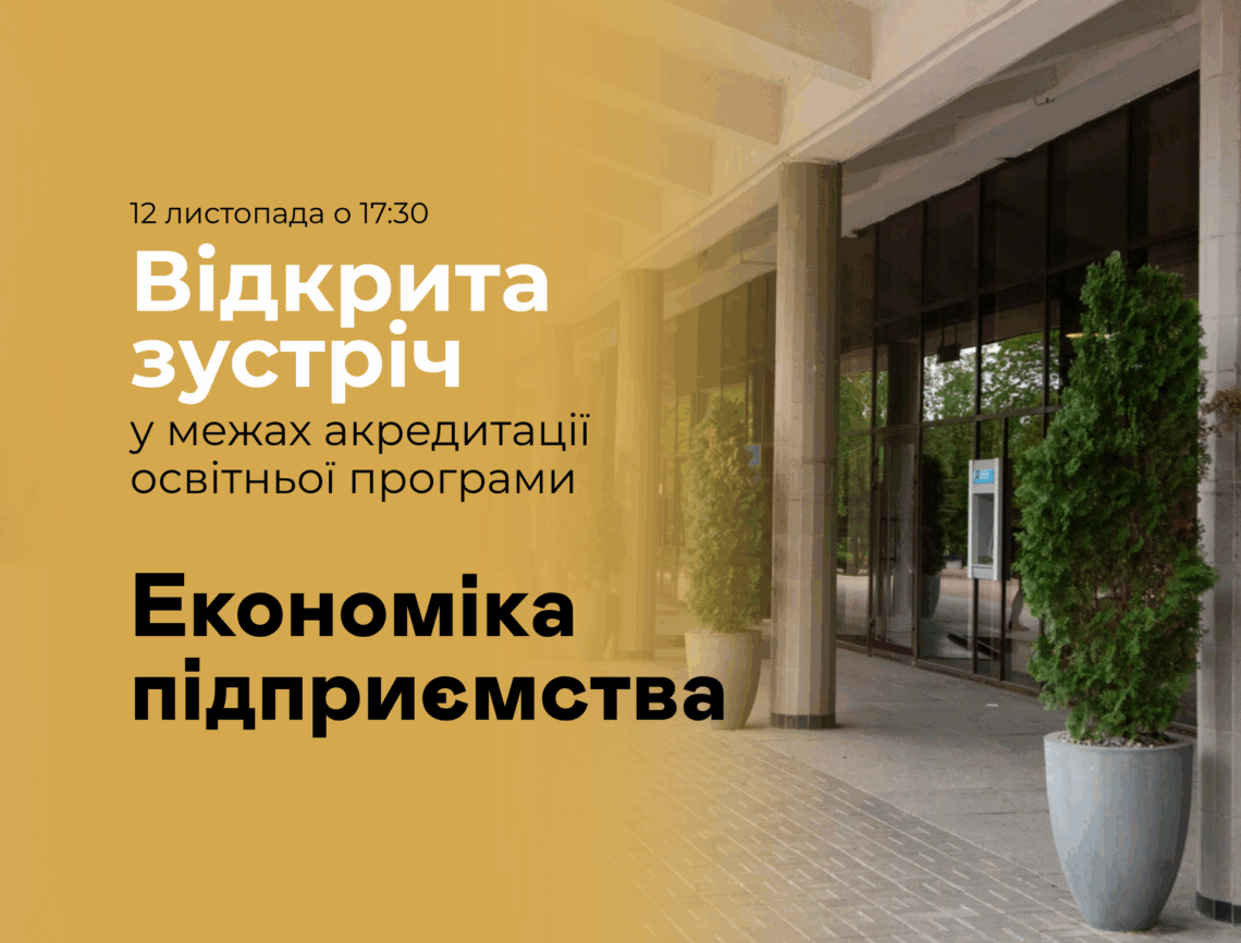 12 листопада 2025 року о 17:30 у межах проведення акредитаційної експертизи освітньої програми ID 6059 КНУБА «Економіка підприємства» другого (магістерського) рівня вищої освіти у Київському національному університеті будівництва і архітектури відбудеться відкрита зустріч з експертною групою.