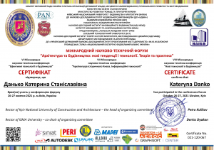 Пилипчук О.Д., Кривенко О.В., Авдєєва Н.Ю. (2021). До питання формування сучасних педагогічних методик навчання біодизайну при підготовці архітекторів. International scientific conference Modern European psychological and pedagogical education. The development of a creative learning environment: conference proceedings, October 8–9, 2021, WSBW (Wyższa Szkoła Bezpieczeństwa Wewnętrznego w Łodzi). Łódź, the Republic of Poland: Baltija Publishing, 2021, 78–81 . DOI: https://doi.org/10.30525/978-9934-26-146-6-20.