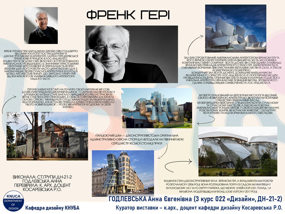 Запрошуємо переглянути онлайн-виставку “СВІТОВІ МИТЦІ XX-XXI СТОЛІТЬ“, де представлено 32 роботи студентів 3 курсу спеціальності 022 «Дизайн» кафедри дизайну КНУБА (академічні групи ДН-22-1, ДН-21-2, ДН-21-3, ДН-21-4 та ДН-21-5), які були виконані в межах навчальної дисципліни «Історія дизайну, мистецтва і архітектури» весняного семестру 2023-2024 навчального року під керівництвом кандидата архітектури, доцента кафедри дизайну Косаревської Раддаміли Олександрівни.