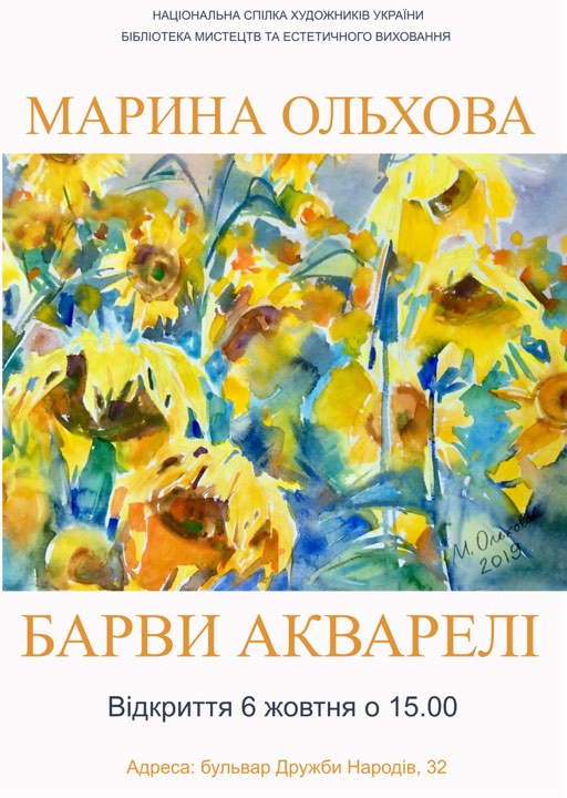 - 2019 Персональна виставка “БАРВИ АКВАРЕЛІ” (було представлено 14 творчих робіт) / Бібліотека мистецтв та естетичного виховання (адреса: м.Київ, бульвар Дружби Народів, 32). – 06.10-06.11.2019.