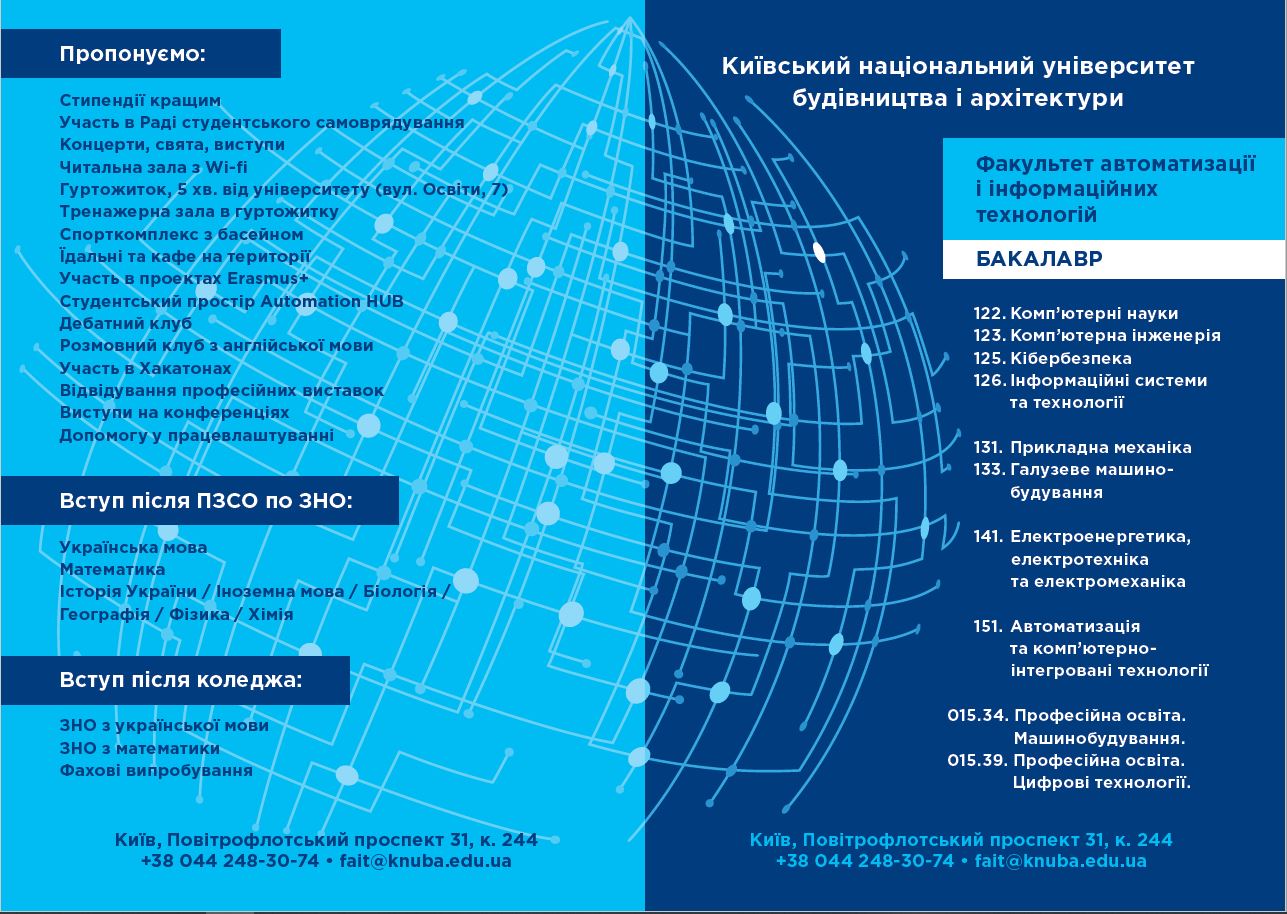 11.06.2022 р. проведено онлайн-зустріч зі здобувачами бакалаврського рівня вищої освіти на факультеті автоматизації і інформаційних технологій КНУБА з метою залучення їх до професійно-орієнтованих заходів у закладах базової середньої освіти, професійно-технічних закладах освіти, закладах вищої освіти I-II рівнів акредитації. Щоб на власному прикладі розповісти майбутнім абітурієнтам про освітній процес в університеті, студентське життя та дозвілля, в тому числі навчання на факультеті автоматизації і інформаційних технологій.