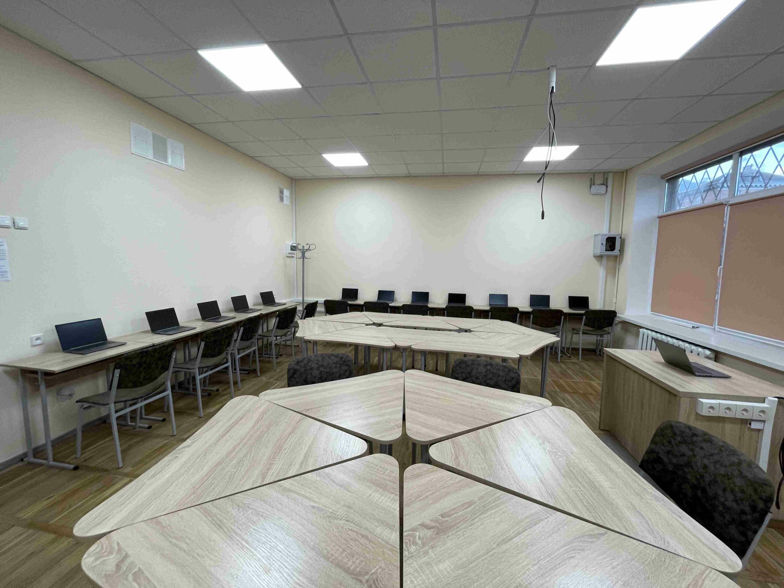 Матеріально-технічна база кафедри оновлена протягом 2021-2024 рр. в рамках упровадження міжнародних проєктів «Віртуальна (он-лайн) магістерська взаємодія з інтелектуальної обробки даних (ViMaCs)» («Virtual Master Cooperation Data Science (ViMaCs)»), який реалізовується в рамках програми підтримки інтернаціоналізації українських університетів, у напрямку спільного формування цифрового майбутнього: Німецько-Українська взаємодія 2019-2021 та 2021 – 2024, за кошти німецької служби академічних обмінів DAAD (https://vimacs.go-study-europe.de/; https://www.knuba.edu.ua/faculties/fait/kafedri-fait/kafedra-up/international-projects/) та «Міждоменні компетентності для здорової та безпечної роботи у 21 сторіччі» («Cross-domain competences for healthy and safe work in the 21st century», № 619034-EPP-1-2020-1-UA-EPPKA2-CBHE-JP) (http://work4ce.eu/; https://www.knuba.edu.ua/faculties/fait/kafedri-fait/kafedra-up/international-projects/), що реалізовується за кошти Європейського Союзу. Саме завдяки реалізації проєктів навчальна лабораторія кафедри тепер включає: лабораторію інформаційних технологій, лабораторію дистанційного навчання та цифрову лабораторію спільного виробництва електронних навчальних ресурсів. Інформацію щодо постачання нового обладнання можна віднайти на офіційному фейсбуці кафедри (https://www.facebook.com/profile.php?id=100060452332054) та на сайті університету (https://www.knuba.edu.ua/nova-kompyuterna-texniki-dlya-navchannya-studentiv-rezultat-uprovadzhennya-mizhnarodnogo-proyektu-work4ce/). Навчальний процес проводиться у лабораторіях.