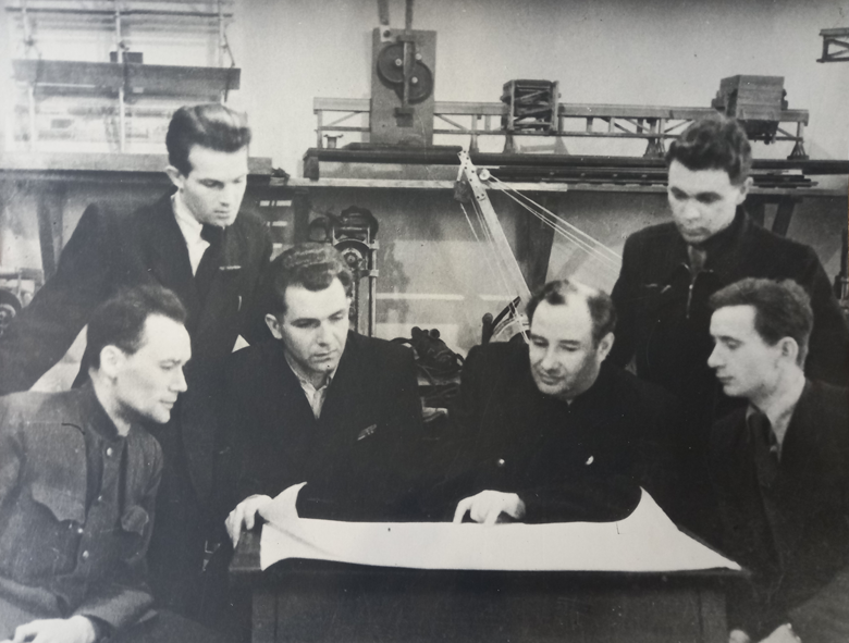 Стоять – Іванов Є.С. (випуск 1951 – СТФ ?) , Сікало П.І.(випуск 1951 – ПЦБ), Євстіфеєв М.Ф.(випуск 1953 – архітектурний факультет),
