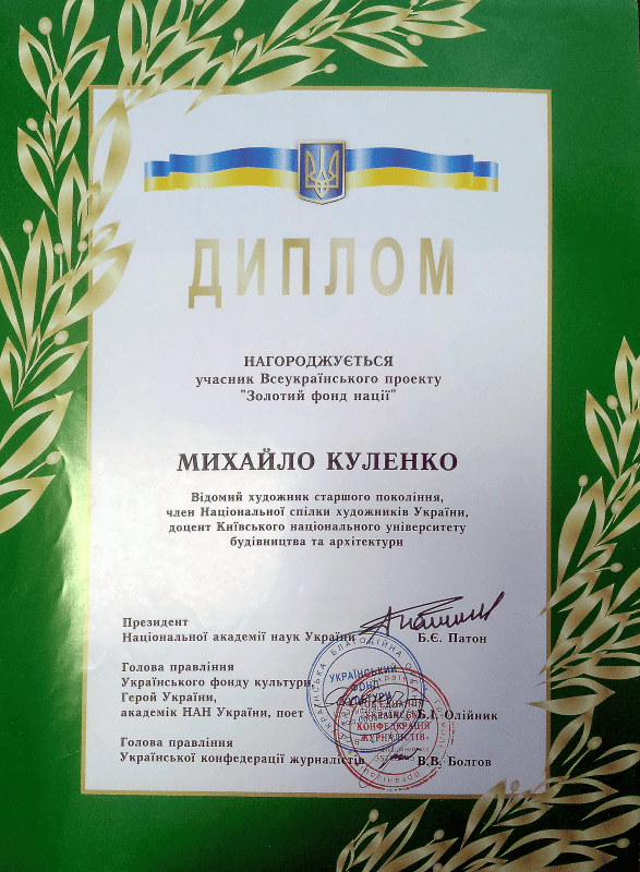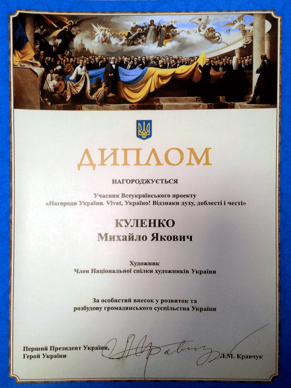 - Нагороджений багатьма грамотами та подяками Міністерства культури України, Українського фонду культури, Національної спілки художників України.