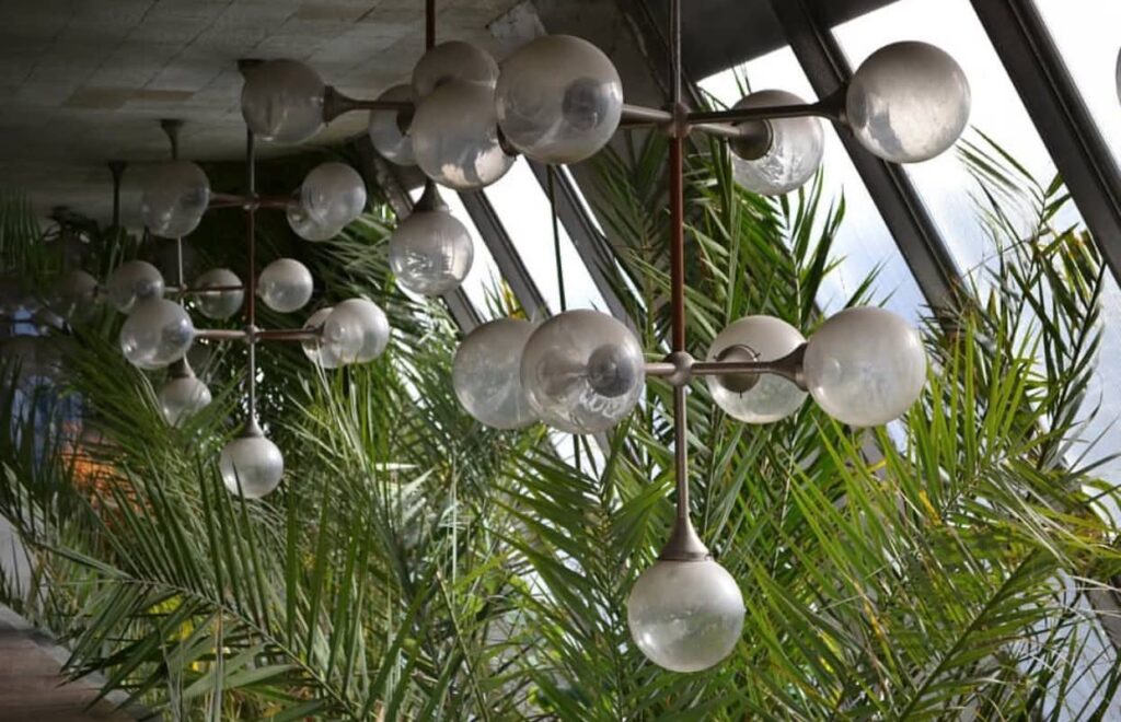 Спеціально для проєкту одного з корпусів були розроблені люстри-молекули, вони мали підкреслити структуру корпусу та зимовий сад всередині нього.