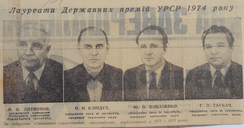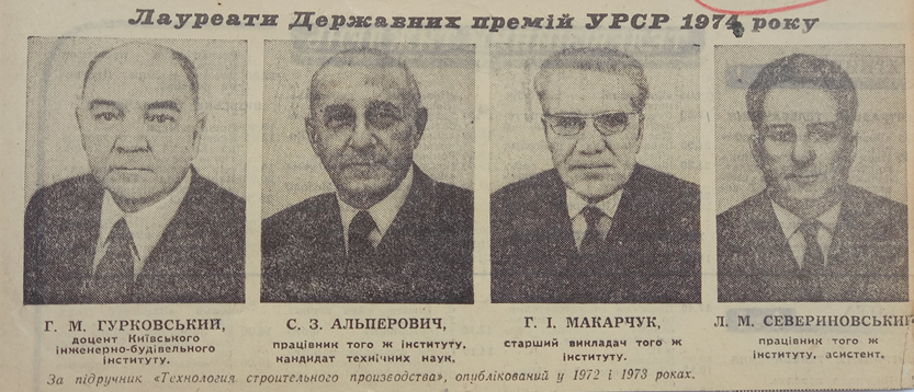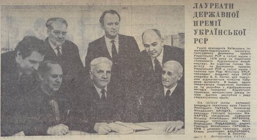 Лауреати Державних премій Державна Премія України в галузі науки і техніки Державна Премія України в галузі архітектури Державна Премія України в галузі освіти Державна Премія Ради Міністрів УРСР імені Т.Г.Шевченка Інші премії та відзнаки найвищого рівня (радянський період) З газети «Радянська освіта», 28.12.1974 З газети «Вечірній Київ», 5.01.1975 Поширити це: Поширити у Facebook (Відкривається у новому вікні) Facebook Поширити на X (Відкривається у новому вікні) X Поширити на LinkedIn (Відкривається у новому вікні) LinkedIn Поширити у WhatsApp (Відкривається у новому вікні) WhatsApp Поширити у Telegram (Відкривається у новому вікні) Telegram