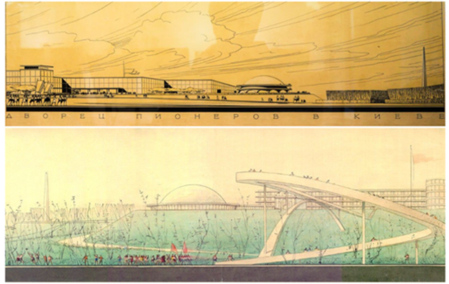 - Київський палац дітей та юнацтва – 1959–1965 (також у співавторстві з Е. Більським). Декоративний басейн перед будівлею та інтер’єри палацу оздобили А. Рибачук і В. Мельниченко, використовуючи мотиви українського народного мистецтва.