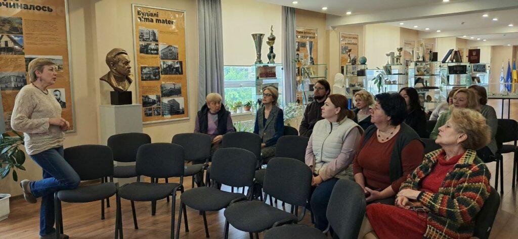 ФОТО МУЗЕЮ Сучасний вигляд музею 1970-ті роки. Ректор Ю.О.Вєтров проводить екскурсію музеєм для почесних гостей інституту. Всесвітній День музеїв 2025 року відзначений екскурсією колективу бібліотеки до музею КНУБА. Екскурсії 2025-2026 навчальний рік. Екскурсії 2024-2025 навчальний рік. Екскурсії студентів 2023-2024 навчальний рік. Поширити це: Натисніть щоб поширити через Facebook (Відкривається у новому вікні) Facebook Натисніть, щоб поширити у X (Відкривається у новому вікні) X Натисніть, щоби поширити на LinkedIn (Відкривається у новому вікні) LinkedIn Натисніть щоб поширити через WhatsApp (Відкривається у новому вікні) WhatsApp Натисніть щоб поширити через Telegram (Відкривається у новому вікні) Telegram
