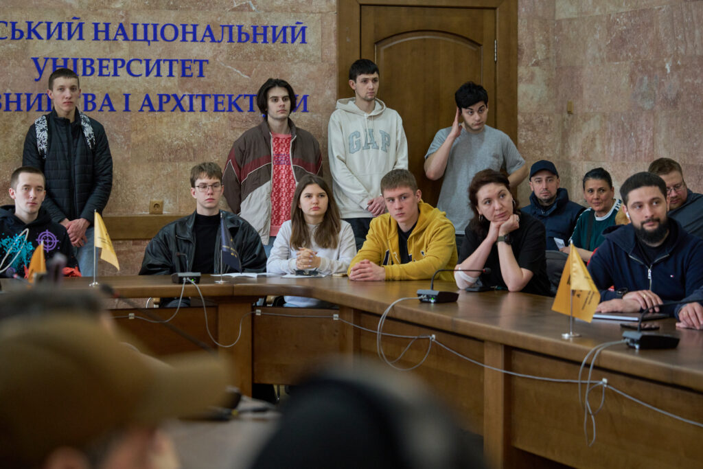 У зустрічі взяли участь студенти і викладачі КНУБА, представники «Київ мілітарі хаб», Ветеранського кластеру України та партнери.