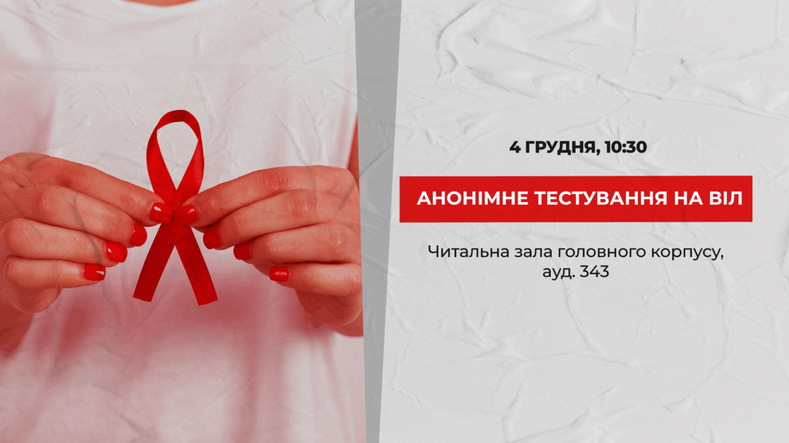 У КНУБА 4 грудня у читальній залі головного корпусу відбудеться анонімне тестування на ВІЛ, сифіліс, гепатити В і С та лекція «Сексуальне та репродуктивне здоров’я: як поєднати профілактику ВІЛ і контрацепцію».
